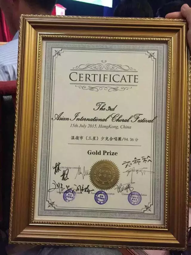 温岭市三星少儿合唱团金奖证书